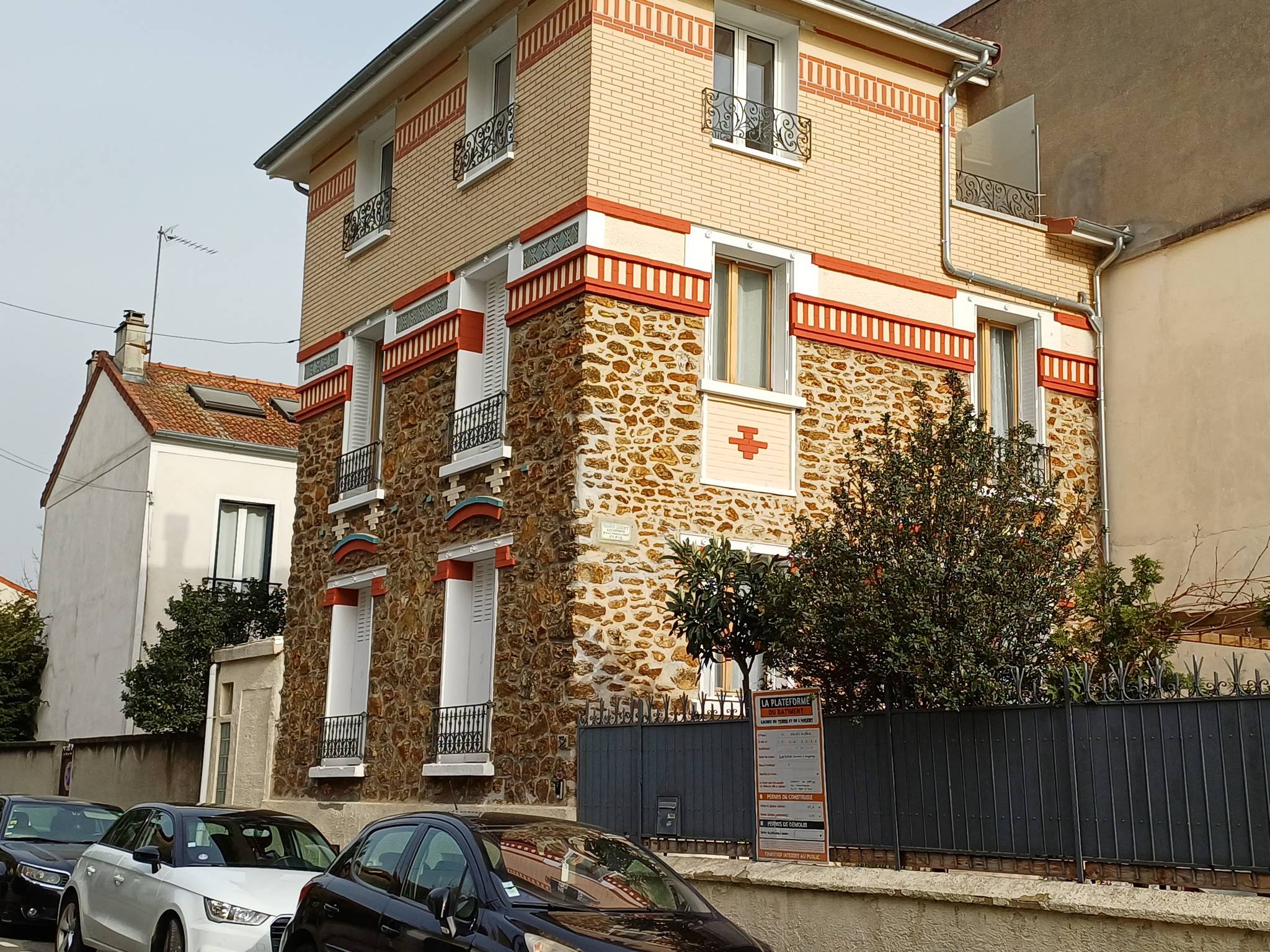 Quelques réalisations 32, rue Lequesne. ![]() ![]() 32, rue Lequesne Habitations à bon marché. Plan de 1906. Prix : 7.700 francs. Lorsque je suis passé en septembre 2025, la maison était en travaux pour ajouter un étage supplémentaire. La photo est donc une capture écran de Google Maps sans la surélévation. ![]() 2026 : La surélévation du pavillon a finalement respecté le style initial.