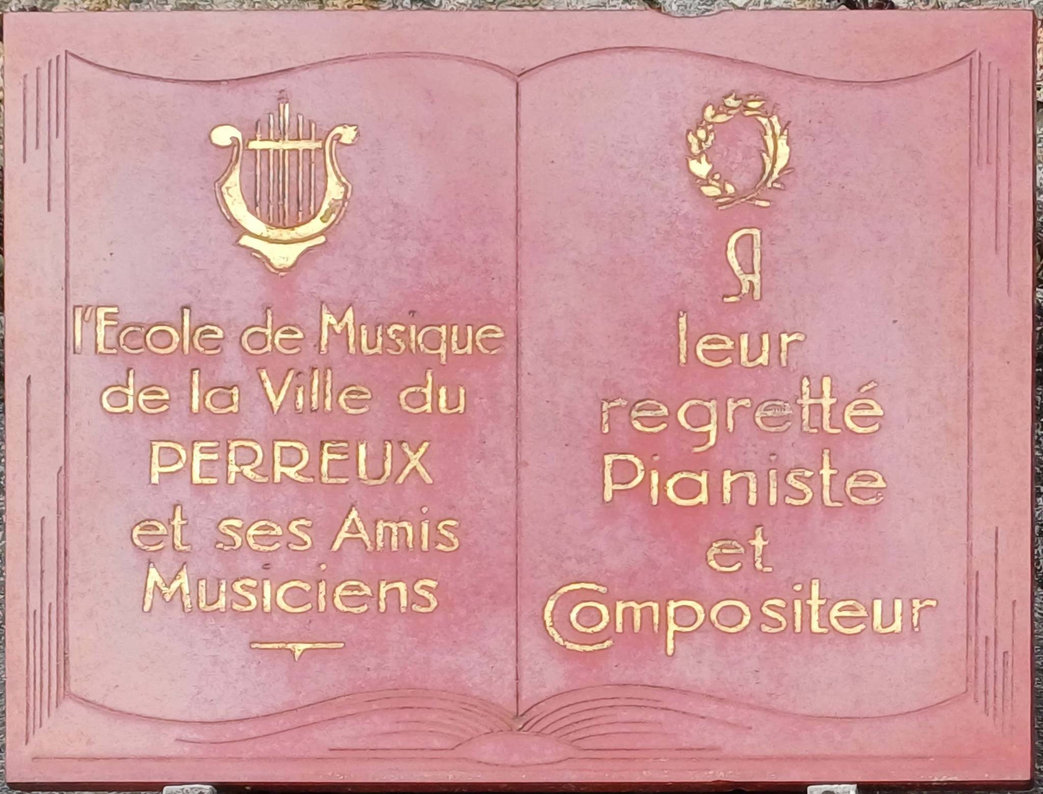Source photo : © Y.Vergez. Plaque sur la tombe Pianiste et compositeur de l'école de musique du Perreux-sur-Marne.