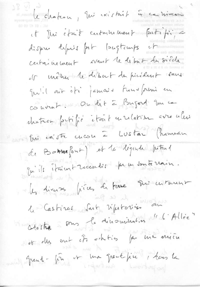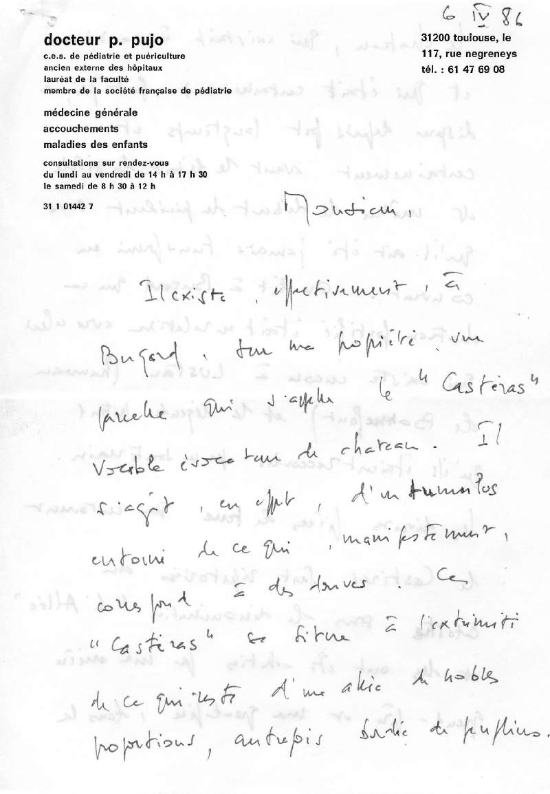 | Il semble que le Casteras dont parle le Docteur Pujo soit en fait le château féodal que j'attribue à la famille de Saint Paul. | bugard_vente_pujo_4.jpg |