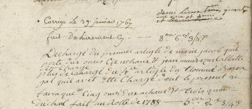 Livre des charges et décharges de Bugard, 1738-1783 », 94 folios.
