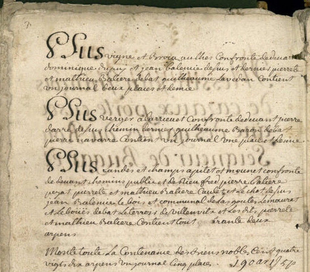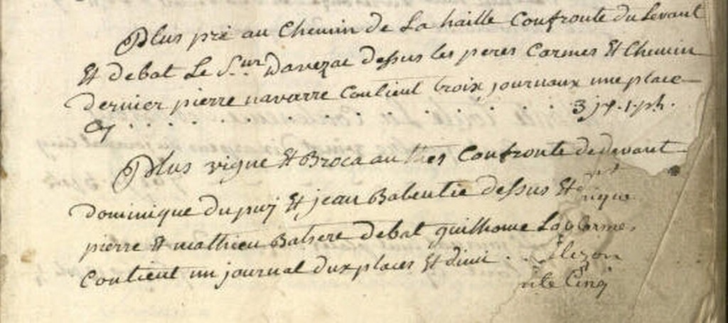 | La révolution de 1789 aura raison de la fortune de la famille. Au décès de Jacques Michel Achille VERGEZ, petit fils du couple Michel Jacques VERGEZ et Jeanne Thérèse BATAILLE, le domaine est mis en vente par licitation le 03 septembre 1875. | |||||||||||||||||||||||||||||||||||||||||||||||||||||||||||||||||||||||||||||||||||